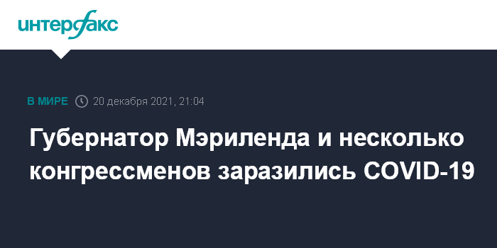 Москва. 20 декабря. INTERFAX.RU - Губернатор штата Мэриленд Ларри Хоган вслед за рядом других высокопоставленных американских официальных лиц заболел коронавирусом, сообщают СМИ США.