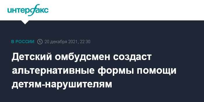 Москва. 20 декабря. INTERFAX.RU - Уполномоченный при президенте РФ по правам ребенка Мария Львова-Белова сообщила, что разрабатывает альтернативные формы помощи несовершеннолетним гражданам, совершившим правонарушения.
