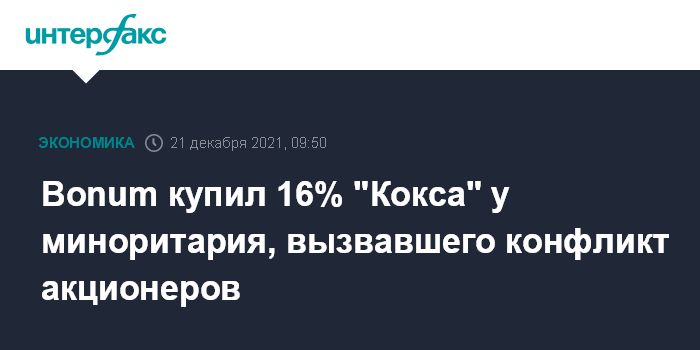 Bonum купил 16% "Кокса" у миноритария, вызвавшего конфликт акционеров