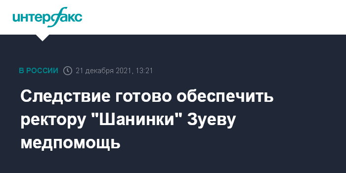 Москва. 21 декабря. INTERFAX.RU - Следствие готово обеспечить оказание надлежащей медпомощи ректору Московской высшей школы социальных и экономических наук ("Шанинка") и директору Института общественных наук РАНХиГС Сергею Зуеву, обвиняемому в особо крупном мошенничестве.