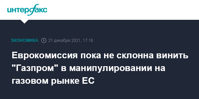 Еврокомиссия пока не склонна винить "Газпром" в манипулировании на газовом рынке ЕС