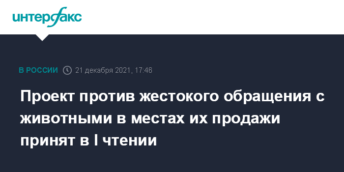 Проект против жестокого обращения с животными в местах их продажи принят в I чтении