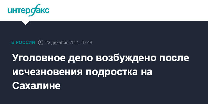 Уголовное дело возбуждено после исчезновения подростка на Сахалине