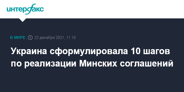 Москва. 22 декабря. INTERFAX.RU - Украина готова выполнять условия минских соглашений об урегулировании ситуации на Донбассе и выписала 10 шагов по их реализации, которые переданы США, Франции, Германии и РФ, заявил президент Украины Владимир Зеленский.