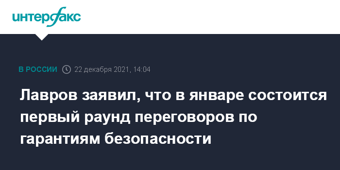 Москва. 22 декабря. INTERFAX.RU - Первый раунд переговоров РФ-США по гарантиям безопасности запланирован на самое начало 2022 года, контакт с НАТО запланирован также на январь, заявил глава МИД РФ Сергей Лавров.