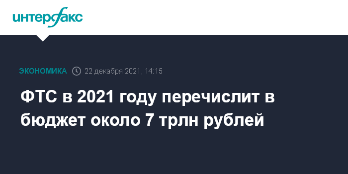 ФТС в 2021 году перечислит в бюджет около 7 трлн рублей