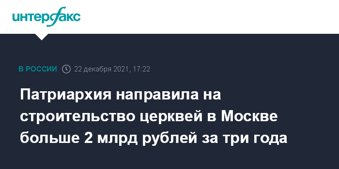 Патриархия направила на строительство церквей в Москве больше 2 млрд рублей за три года
