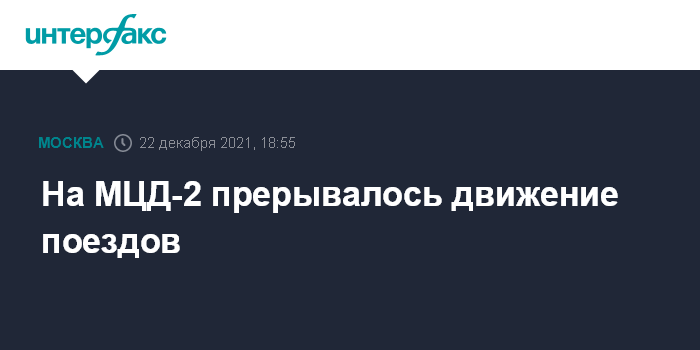 Москва. 22 декабря. INTERFAX.RU - На участке МЦД-2 и Рижского направления от Тушинской до Павшина вечером в среду прерывалось движение поездов из-за временного отсутствия напряжения в контактной сети. Об этом сообщил московский Департамент транспорта.