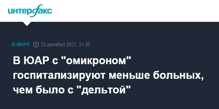 Спустя месяц после появления штамма "омикрон" больницы ЮАР подтвердили, что в стране 5,6% госпитализированных с COVID-19 во время этой волны скончались, тогда как во время предыдущих волн речь шла о 20%.