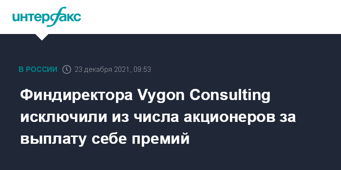 Финдиректора Vygon Consulting исключили из числа акционеров за выплату себе премий