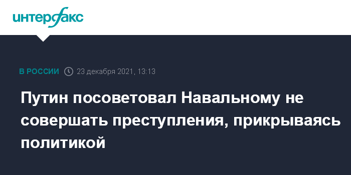 Путин посоветовал Навальному не совершать преступления, прикрываясь политикой
