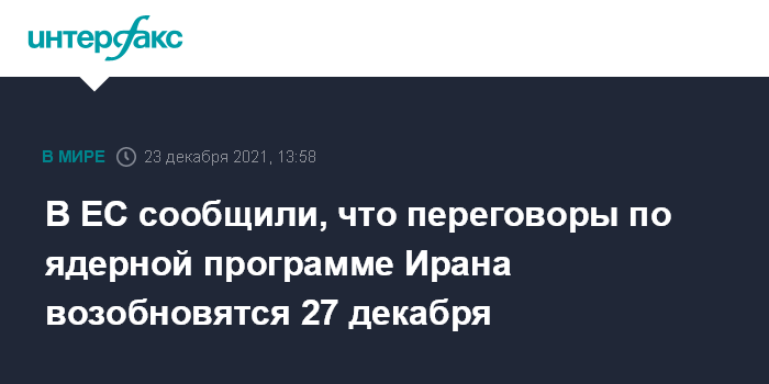 В ЕС сообщили, что переговоры по ядерной программе Ирана возобновятся 27 декабря