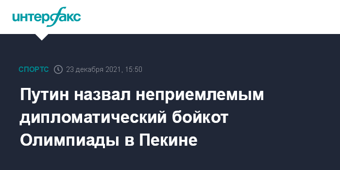 15 декабря Путин в ходе переговоров с председателем КНР Си Цзиньпином в режиме видеоконференции заявил, что намерен в феврале 2022 года посетить церемонию открытия зимних Олимпийских игр в Пекине.