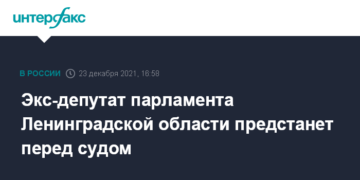 Экс-депутат парламента Ленинградской области предстанет перед судом