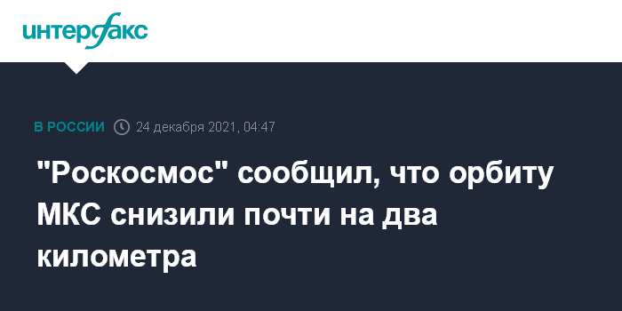 Москва. 24 декабря. INTERFAX.RU - Высоту орбиты Международной космической станции (МКС) скорректировали в рамках подготовки к прибытию пилотируемого корабля "Союз МС-21" и возвращению на Землю корабля "Союз МС-19", сообщили в госкорпорации "Роскосмос".
