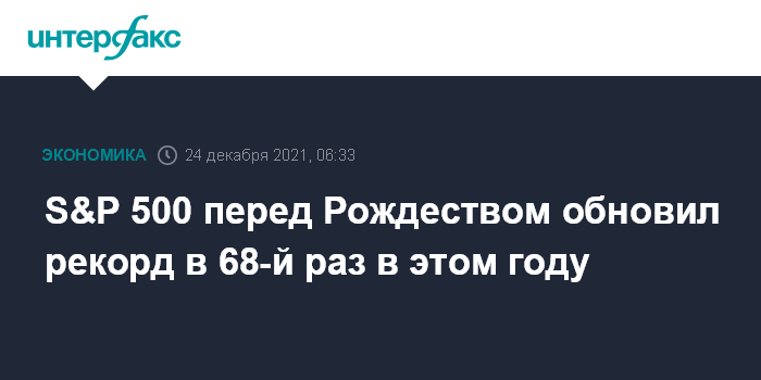 S&P 500 перед Рождеством обновил рекорд в 68-й раз в этом году