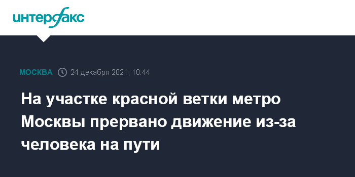 На участке красной ветки метро Москвы прервано движение из-за человека на пути