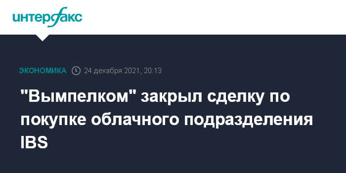 Москва. 24 декабря. INTERFAX.RU - ПАО "Вымпелком" закрыло сделку по приобретению провайдера облачных сервисов IBS DataFort у компании IBS.
