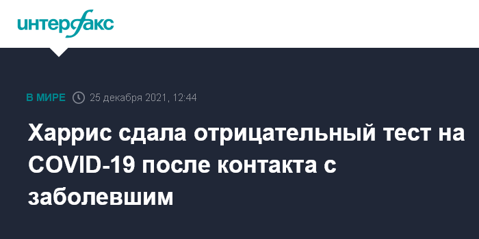 Москва. 25 декабря. INTERFAX.RU - Вице-президент США Камала Харрис сдала отрицательный тест на коронавирус COVID-19 после контакта с одним из зараженных сотрудников, сообщает The Hill.