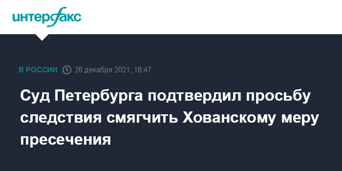Суд Петербурга подтвердил просьбу следствия смягчить Хованскому меру пресечения