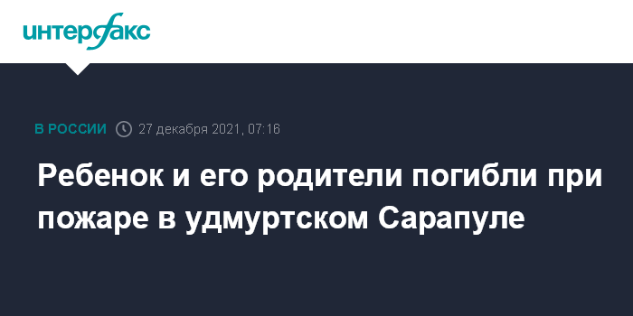 Ребенок и его родители погибли при пожаре в удмуртском Сарапуле