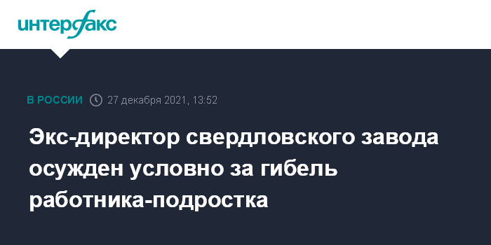 Экс-директор свердловского завода осужден условно за гибель работника-подростка