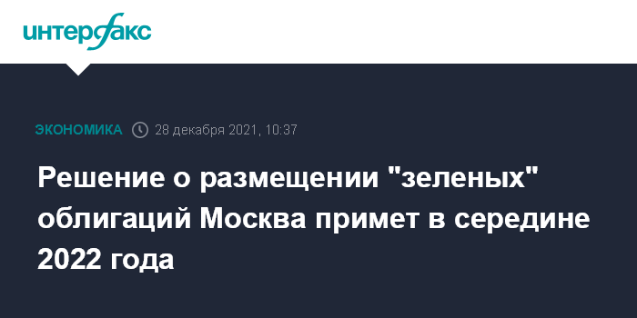 Решение о размещении "зеленых" облигаций Москва примет в середине 2022 года