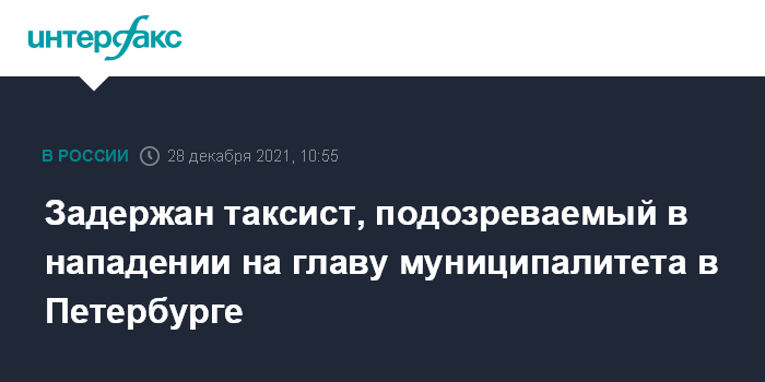 Задержан таксист, подозреваемый в нападении на главу муниципалитета в Петербурге