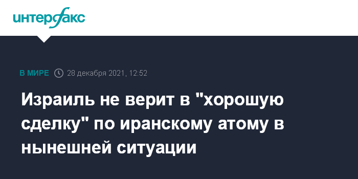 Москва. 28 декабря. INTERFAX.RU - В нынешней ситуации Тегеран и мировое сообщество вряд ли смогут заключить "хорошую сделку" по иранской ядерной программе. Об этом заявил премьер-министр Израиля Нафтали Беннет.