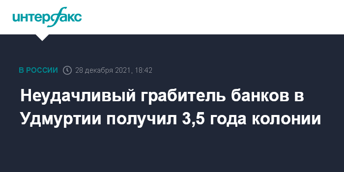 Неудачливый грабитель банков в Удмуртии получил 3,5 года колонии