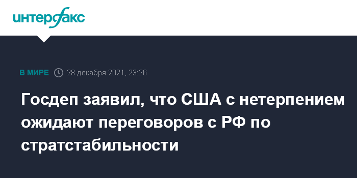 Госдеп заявил, что США с нетерпением ожидают переговоров с РФ по стратстабильности
