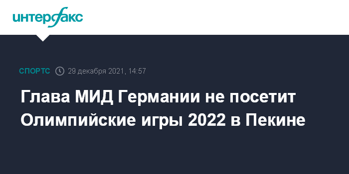 Глава МИД Германии не посетит Олимпийские игры 2022 в Пекине