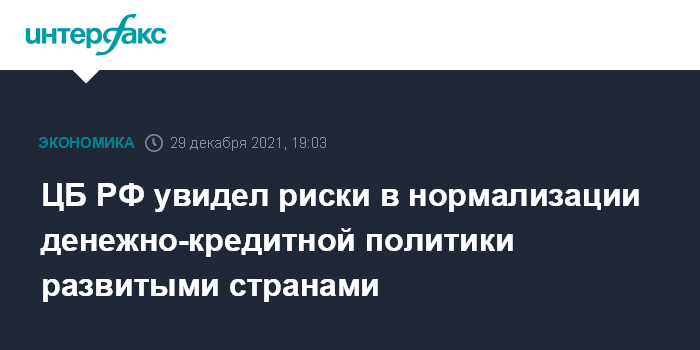 ЦБ РФ увидел риски в нормализации денежно-кредитной политики развитыми странами