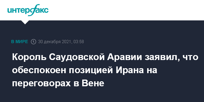 Король Саудовской Аравии заявил, что обеспокоен позицией Ирана на переговорах в Вене
