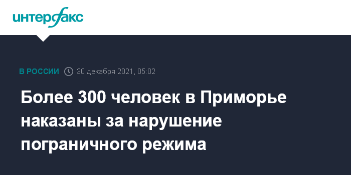 Москва. 30 декабря. INTERFAX.RU - Правила пограничного режима в Приморье в 2021 году нарушили более трех сотен человек, сообщила в четверг пресс-группа Пограничного управления СБ РФ по Приморскому краю.