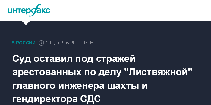 Как сообщалось, 15 декабря Центральный районный суд Кемерово удовлетворил ходатайство следствия, поддержанного прокуратурой, и арестовал Михаила Федяева (основной собственник "Листвяжной", председатель совета директоров СДС), Лобанова (главный инженер ООО "Шахта "Листвяжная"), Антона Якутова (технический директор холдинга), Алексеева (гендиректор холдинга) по делу о гибели людей в шахте.