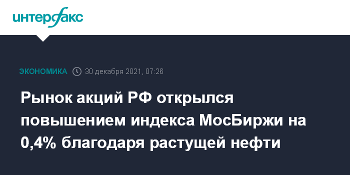 Рынок акций РФ открылся повышением индекса МосБиржи на 0,4% благодаря растущей нефти