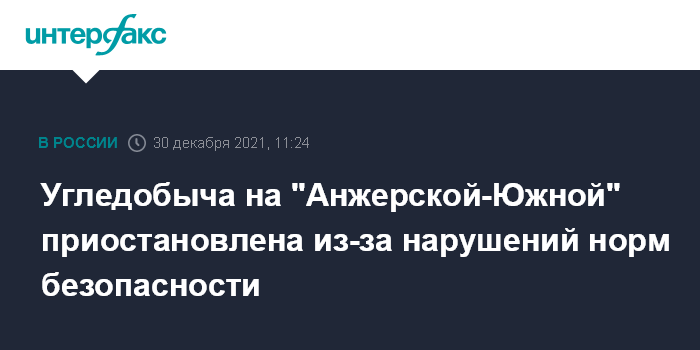Как сообщалось, 19 июня на "Анжерской-Южной" произошло обрушение породы и погиб горняк. В июле Сибирское управление Ростехнадзора в ходе проверки выявило на предприятии 139 нарушений требований промбезопасности.