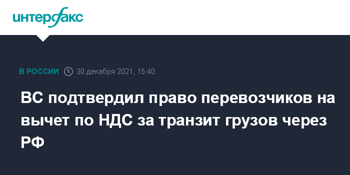 ВС подтвердил право перевозчиков на вычет по НДС за транзит грузов через РФ