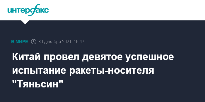 "В 12:40 (7:40 по Москве - ИФ) 30 декабря Space Transportation успешно завершила 9-ю миссию ракеты-носителя серии "Тяньсин"", - говорится в сообщении компании.