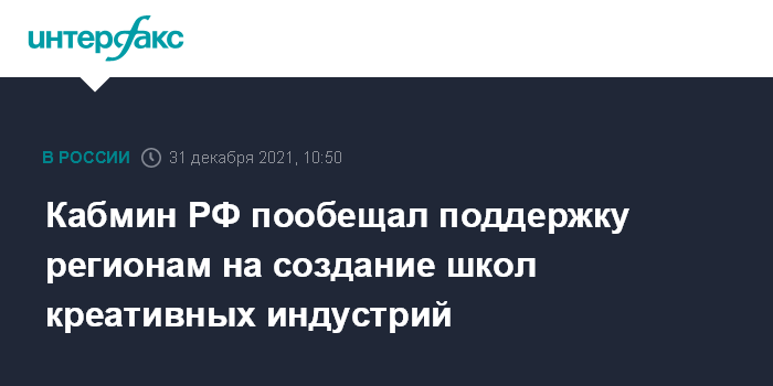 Кабмин РФ пообещал поддержку регионам на создание школ креативных индустрий