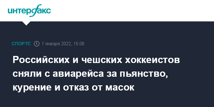 Москва. 1 января. INTERFAX.RU - Игроков молодежных сборных России и Чехии по хоккею сняли с авиарейса за нарушение правил поведения, сообщает журналист SVT Мари Леманн в твиттере.