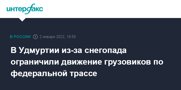 Как отмечается в сообщении, мера коснулась грузовиков с 20:00 (19:00 по Москве) 2 января до 01:00 (00:00 по Москве) 3 января на участке от границы с Пермским краем до границы с Татарстаном.