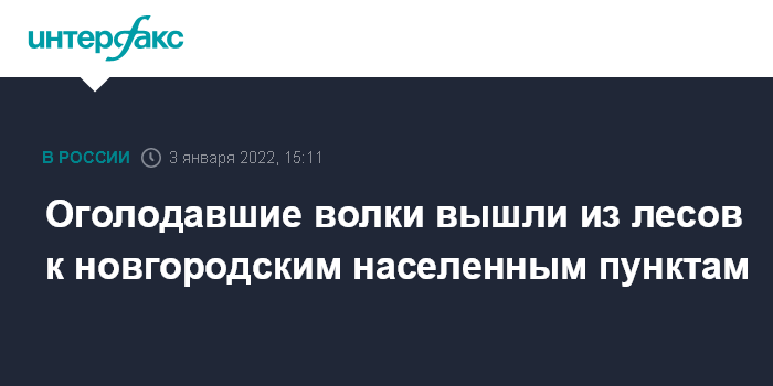 Москва. 3 января. INTERFAX.RU - Оголодавшие за зиму волки в Новгородской области вышли из лесов к населенным пунктам. Об этом сообщили в понедельник "Интерфаксу" в региональном правительстве.