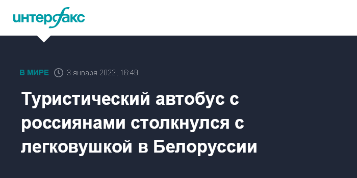 Москва. 3 января. INTERFAX.RU - Туристический автобус, перевозивший россиян, столкнулся с легковым автомобилем в Витебской области Белоруссии, среди пострадавших пассажиров четверо детей. Об этом сообщили в Следственном комитете республики.