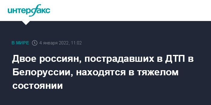 Двое россиян, пострадавших в ДТП в Белоруссии, находятся в тяжелом состоянии