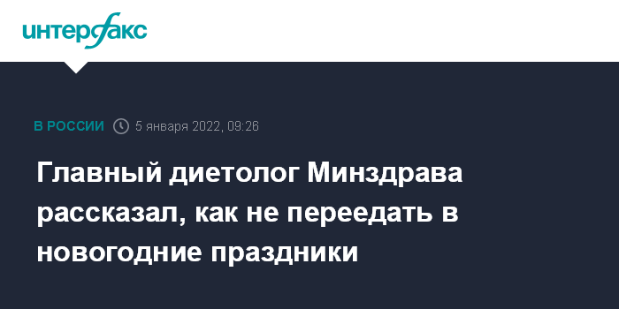 Москва. 5 января. INTERFAX.RU - Главный внештатный диетолог Минздрава России Виктор Тутельян ради снижения риска набрать лишний вес в новогодние праздники рекомендует заменить в меню застолий колбасы нежирным мясом или рыбой с овощным гарниром, а также не забывать о прогулках и активном отдыхе на свежем воздухе.
