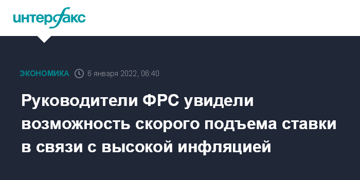 Руководители ФРС увидели возможность скорого подъема ставки в связи с высокой инфляцией