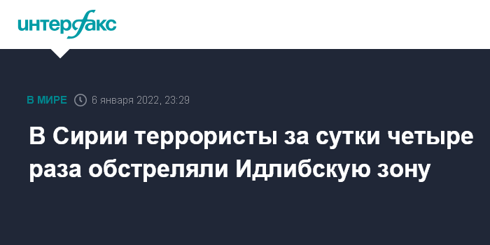 В Сирии террористы за сутки четыре раза обстреляли Идлибскую зону