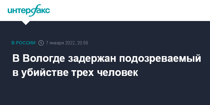 Москва. 7 января. INTERFAX.RU - В Вологде 27-летнего мужчину задержали о подозрению в причастности к убийству 83-летнего пенсионера, 34-летней женщины и ее трехлетнего сына, сообщили в преcc-службе СКР.